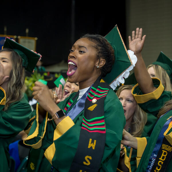 Wright State University President Cheryl B. Schrader addressed the class by focusing on many of the graduates' achievements in the last year. "Class of 2019, each of you has left your own unique mark on our Wright State family and community," said Schrader.