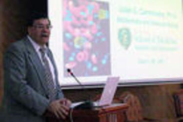 Julian Gomez-Cambronero, Ph.D., was awarded the title of "Honorary Professor" at Southern Medical University in Guangzhou, China, on April 10, 2012, for his international standing as a leader in cell signaling. He was nominated by Dr. Hong-Juan Peng, a visiting professor in Dr. Cambronero's lab two years ago and with whom he has established scientific collaborations in the field of Rho-GTPases and cell migration. The ceremony was officiated by the dean of Southern Medical University (Dr. Zou) and the university provost.