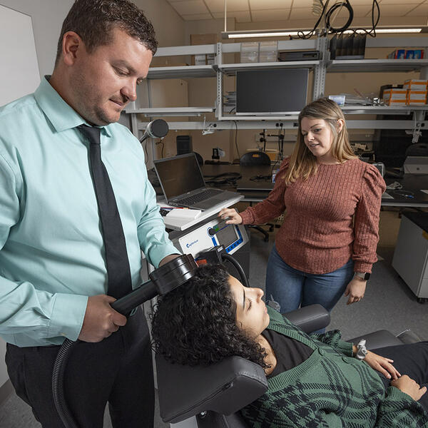 Matt Sherwood, a research associate professor in the Department of Neuroscience, Cell Biology and Physiology, will lead a clinical trial on the use of electroencephalogram transcranial magnetic stimulation to treat PTSD.